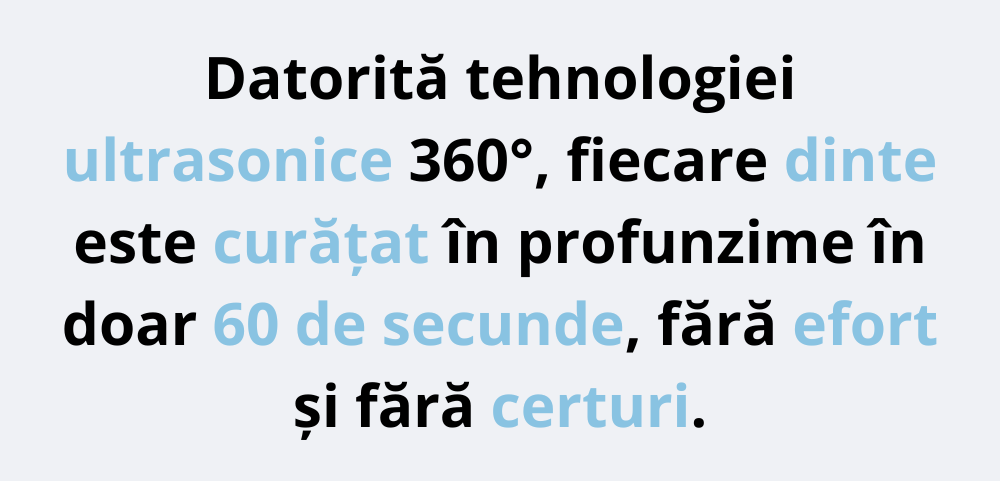Doar 60 de secunde cu tehnologia ultrasonică 360°! Dinți curați, fără certuri și mai mult timp pentru întreaga familie.